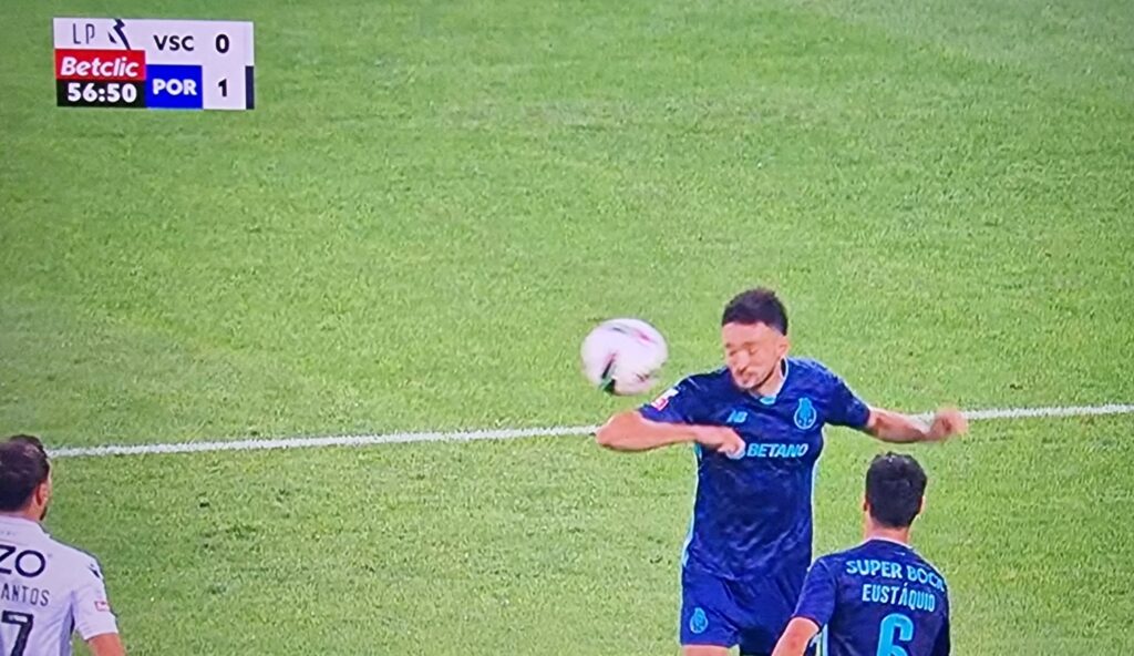Os jogadores do Vitória SC queixaram-se de uma grande penalidade após João Mário ter ido com a bola ao braço ao falhar um cabeceamento, dentro da área defendida por Diogo Costa. Fábio Veríssimo, árbitro da partida e o VAR Fábio Melo nada assinalaram.